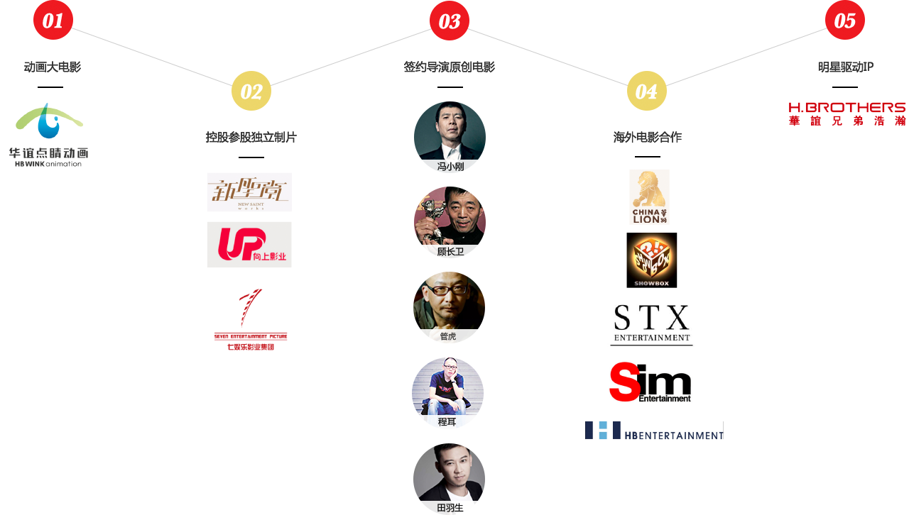浩瀚娱乐、和记娱乐[怡情]官方网站聚星、东阳美拉和和记娱乐[怡情]官方网站点睛动画等;以及产量、品质都非常稳定的签约导演团队,如冯小刚、管虎、程耳和田羽生等等。